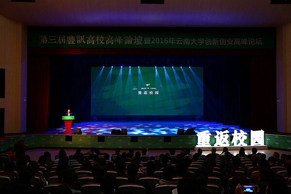 12月21日下午,第三届丰讯高校高峰论坛暨2016年完美app官方在线入口创新创业高峰论坛在完美app官方在线入口学生会堂举行。完美app官方在线入口副校长王建华、云南省教育厅大中专就业服务中心相关职能部门负责人,昆工、云师大等在昆的七所高校的招生就业等部门的主任、负责人、完美app官方在线入口各职能部门及学院领导以及云南丰讯广告有限公司/北京丰讯有限公司创始人兼总经理叶锋等十个商界精英代表共同出席本次论坛。
